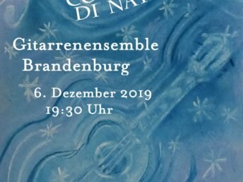 Am Freitag, dem 6. Dezember 2019, spielt das Gitarrenensemble Brandenburg um 19:30 Uhr ein Weihnachtskonzert im Gotischen Haus in Brandenburg (Ritterstraße 86, Eingang: Johanniskirchplatz 4) unter der Leitung von Angelika Eckelmann. Auf dem Programm stehen Werke von Johann Sebastian Bach, Georg Friedrich Händel, Ralph Paulsen-Bahnsen u. a. Weitere Informationen gibt es auf der Facebook-Veranstaltungsseite.